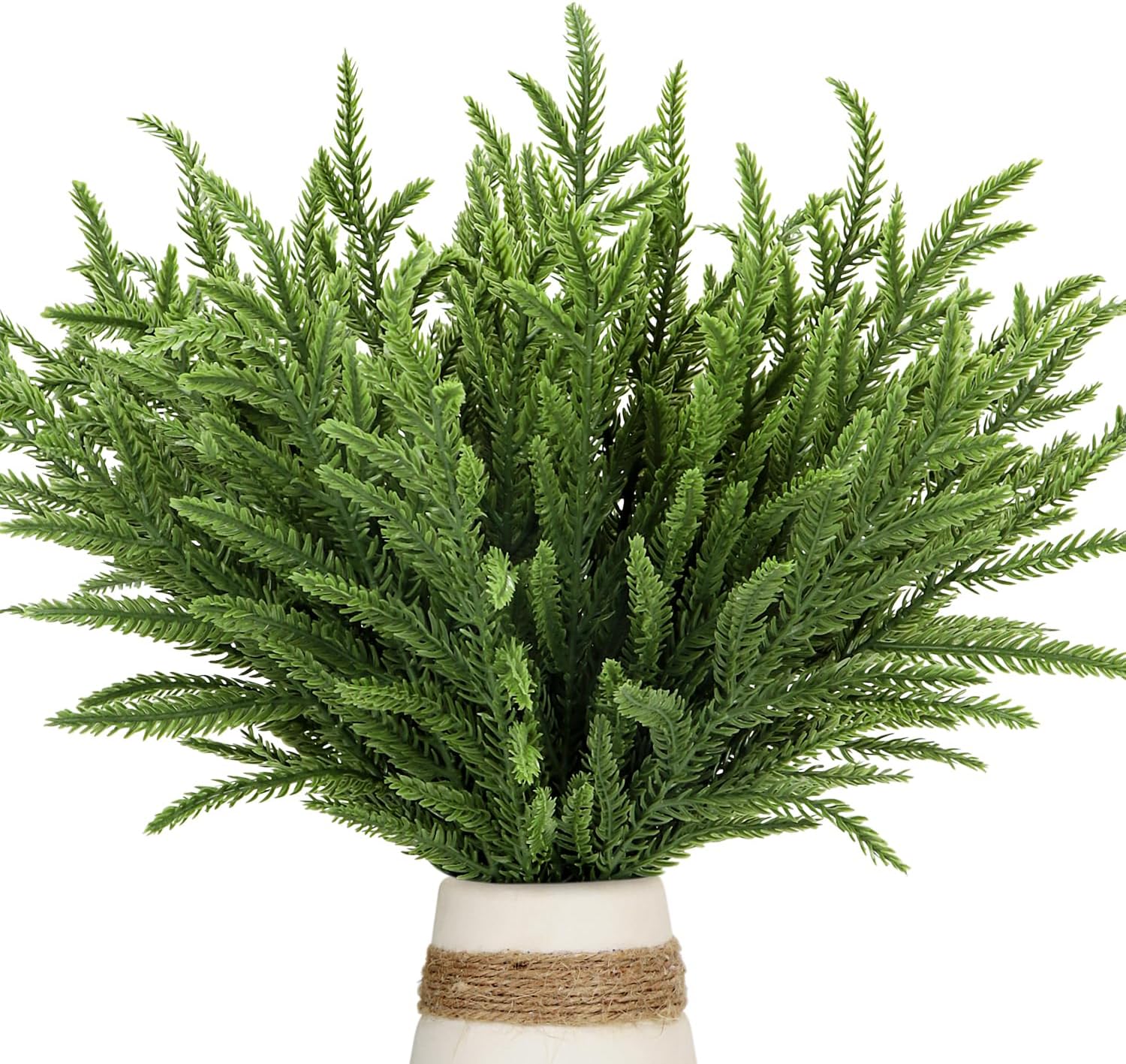 30 Pcs Christmas Real Touch Norfolk Stems, 15Inch Artificial Pine Branches Faux Evergreen Pine Sprigs Fake Foliage Greenery Picks for Christmas Wreath Making DIY Crafts Home Decoration (30, Green)