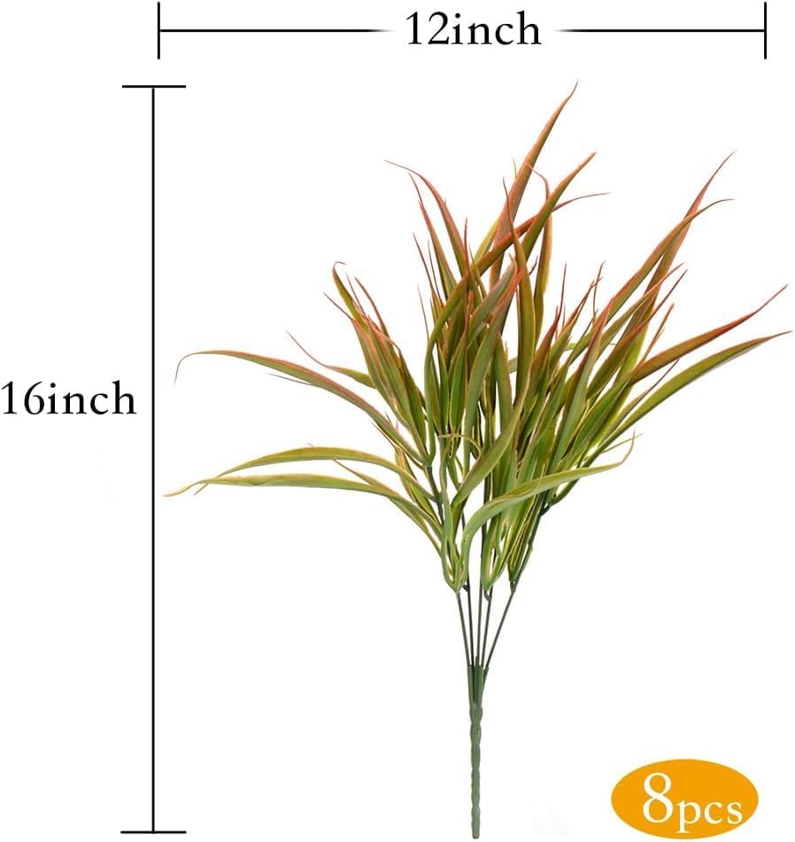 12 Bundles Artificial Grasses Outdoor Plants Fake Wheat Grass Greenery Shrubs UV Resistant for Planters Wedding Indoor Outside Garden Porch Bathroom Home Office Window Box Decor(Green)