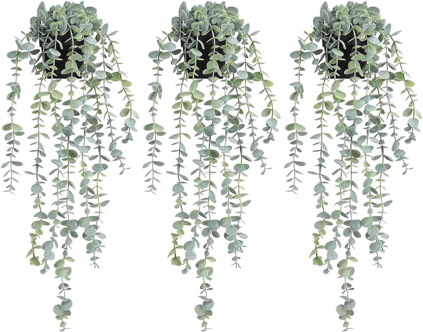 3pcs Hanging Fake Plants, Artificial Hanging Plants Fake Potted Eucalyptus for Wall Room Home Patio Indoor Outdoor Decor