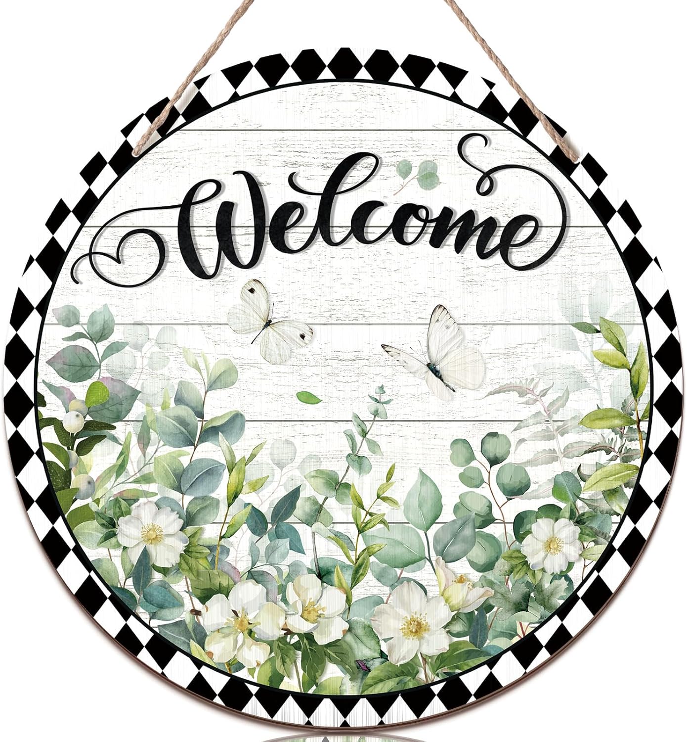 Eucalyptus Leaves Welcome Sign for Front Door Wood Welcome Door Wreath Door