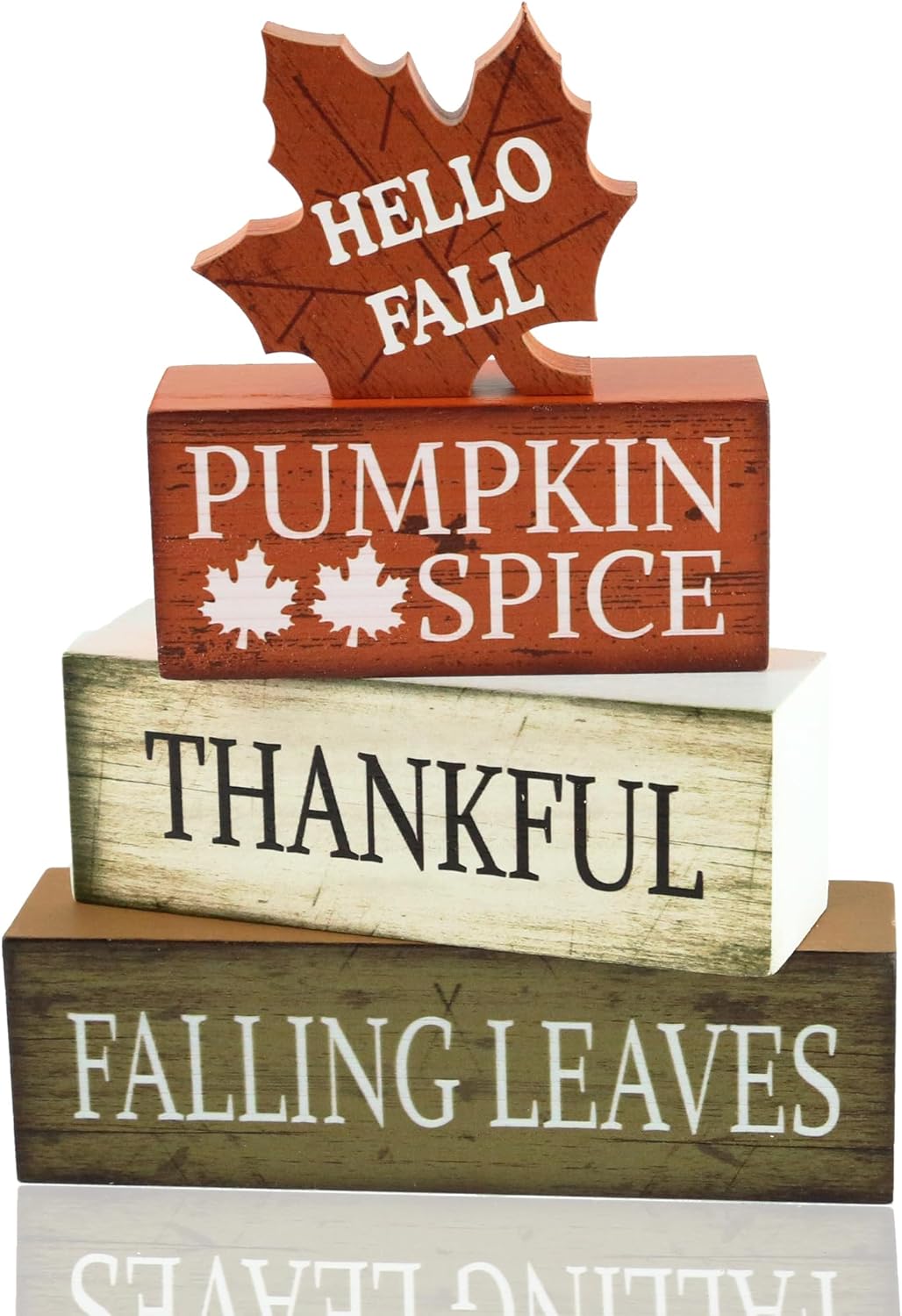 Fall Decorations for Home Fall Thanksgiving Decor 4PCS Wooden Tiered Tray Tabletop Decor Wooden Block Leaf Autumn Farmhouse Block Sign Gift Thanksgiving Centerpiece