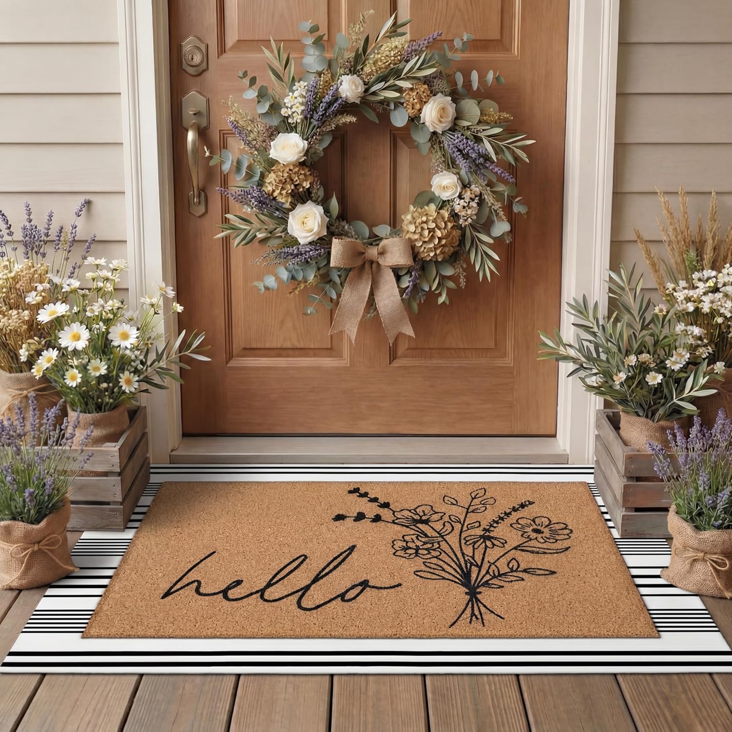 2 Pcs Door Mat Welcome Non Slip Coir Mats Floor Layering Doormats Seasonal for Front Porch Entryway Decor(Wildflower)