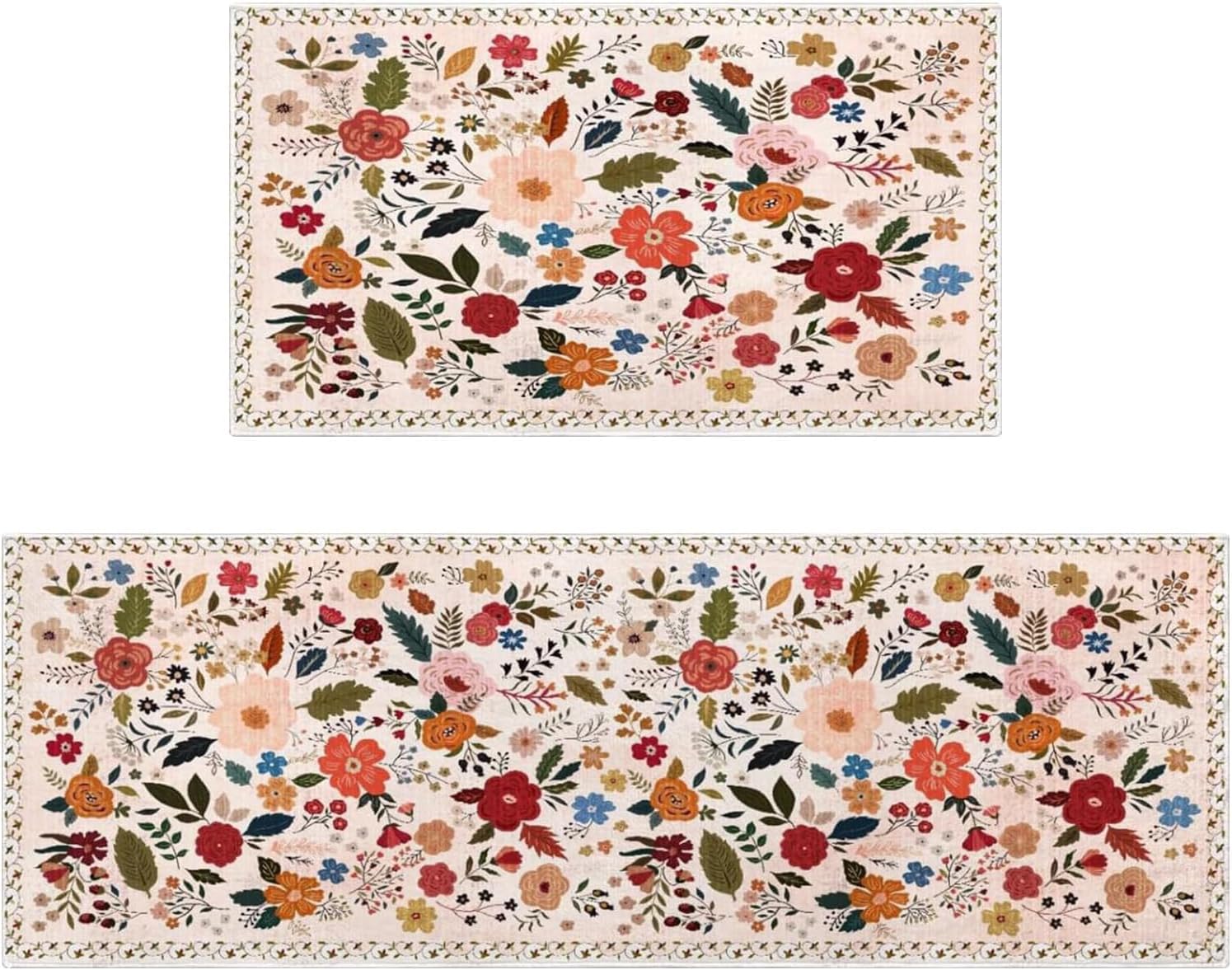 Boho Floral Kitchen Rug Sets of 2 Non Slip Washable Spring Kitchen Mats for Floor 2 Piece Colorful Flower Farmhouse Kitchen Rugs Home Decor