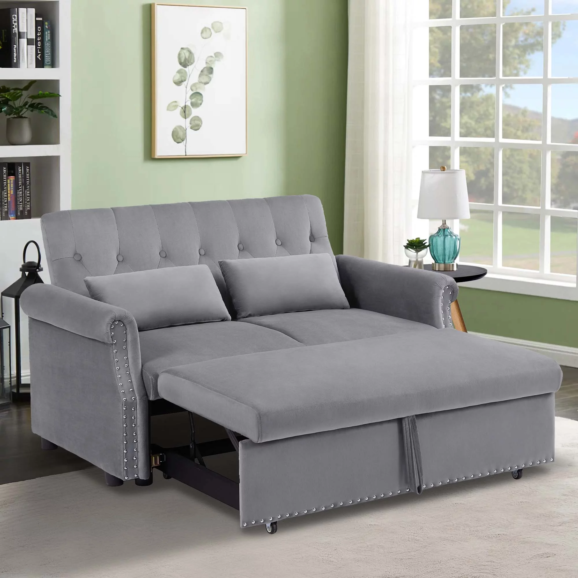 The Aukfa 55-inch convertible sleeper sofa bed with a pull-out couch, featuring a velvet tufted button backrest and a gray color, offers both style and versatility.