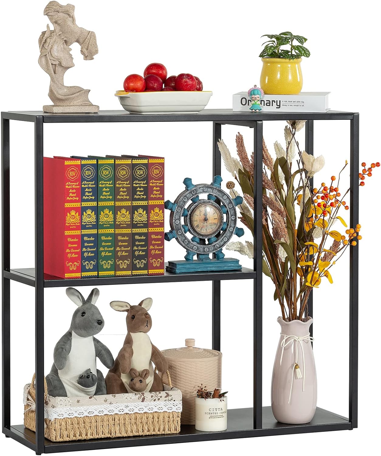 Metal Console Table with 3-Tier Storage Rack – Industrial Entryway Table – Narrow Hallway Sofa Table – Black Finish