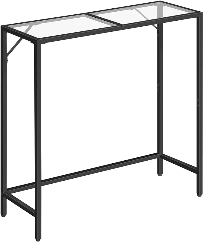MAHANCRIS 27″ Narrow Console Table, Tempered Glass Entryway Table with Metal Frame, Adjustable Feet, Industrial Style for Entrance, Living Room, Hallway, Balcony – Black CTH68B01