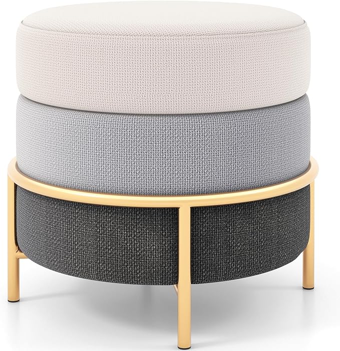 The Giantex Round Ottoman Foot Rest combines functionality with elegant design to enhance your living space. Upholstered in high-quality linen fabric, it offers a comfortable and stylish seating option. The stable X-shaped metal frame with golden legs provides durability and adds a touch of sophistication to your room. Whether used as a footrest, extra seating, or a vanity stool, this ottoman complements various decor styles in your living room, bedroom, or entryway.